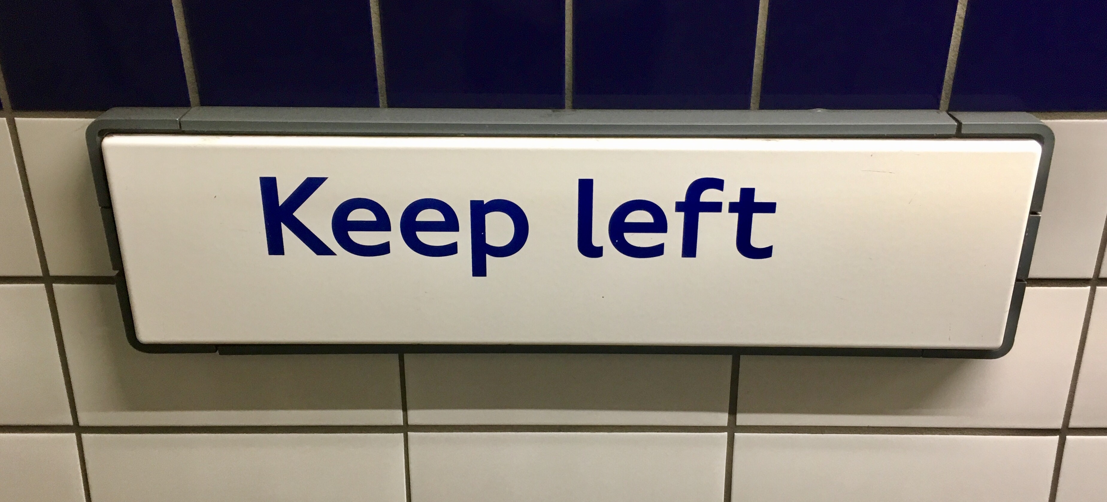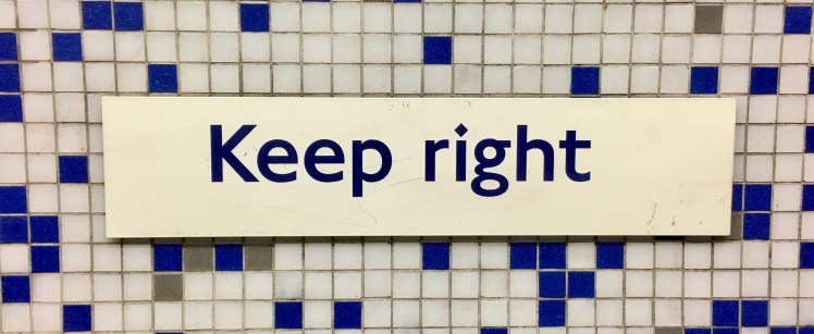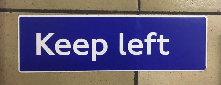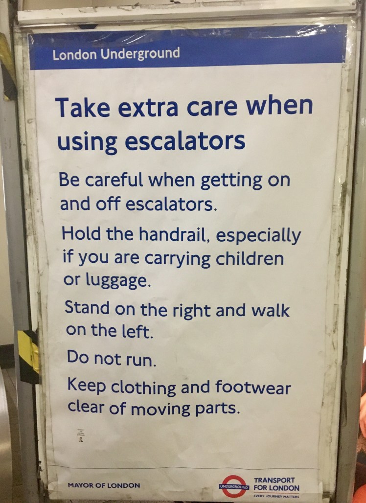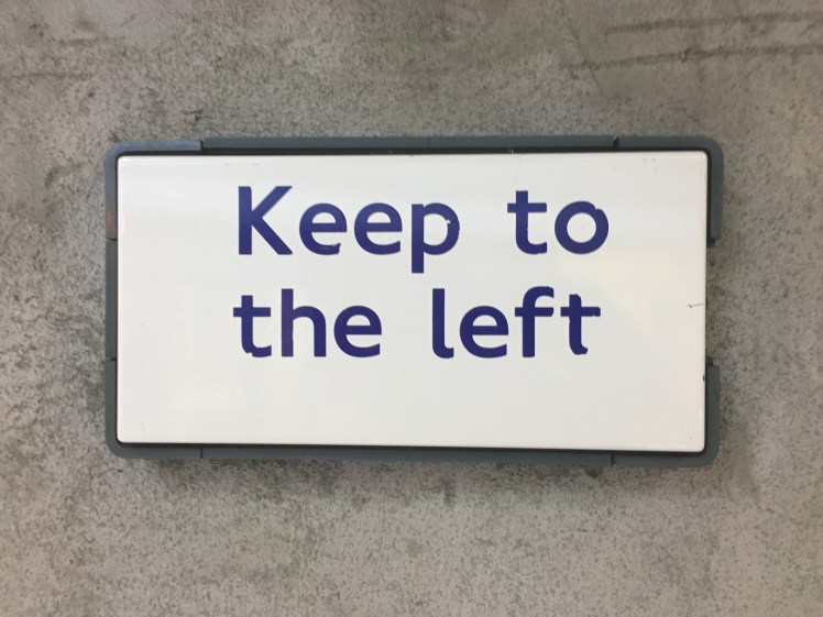 Keep right? Have these Brits lost their minds? Is there a Pro-European employee in ‘Transport for London’ trying to introduce European habits to London? Or have the ‘Keep right’ signs been on ‘Sale’? We’ll probably never know exactly why, but I am completely confused know. However, starting to watch the various signs in the tube gives quite a nice potpourri…