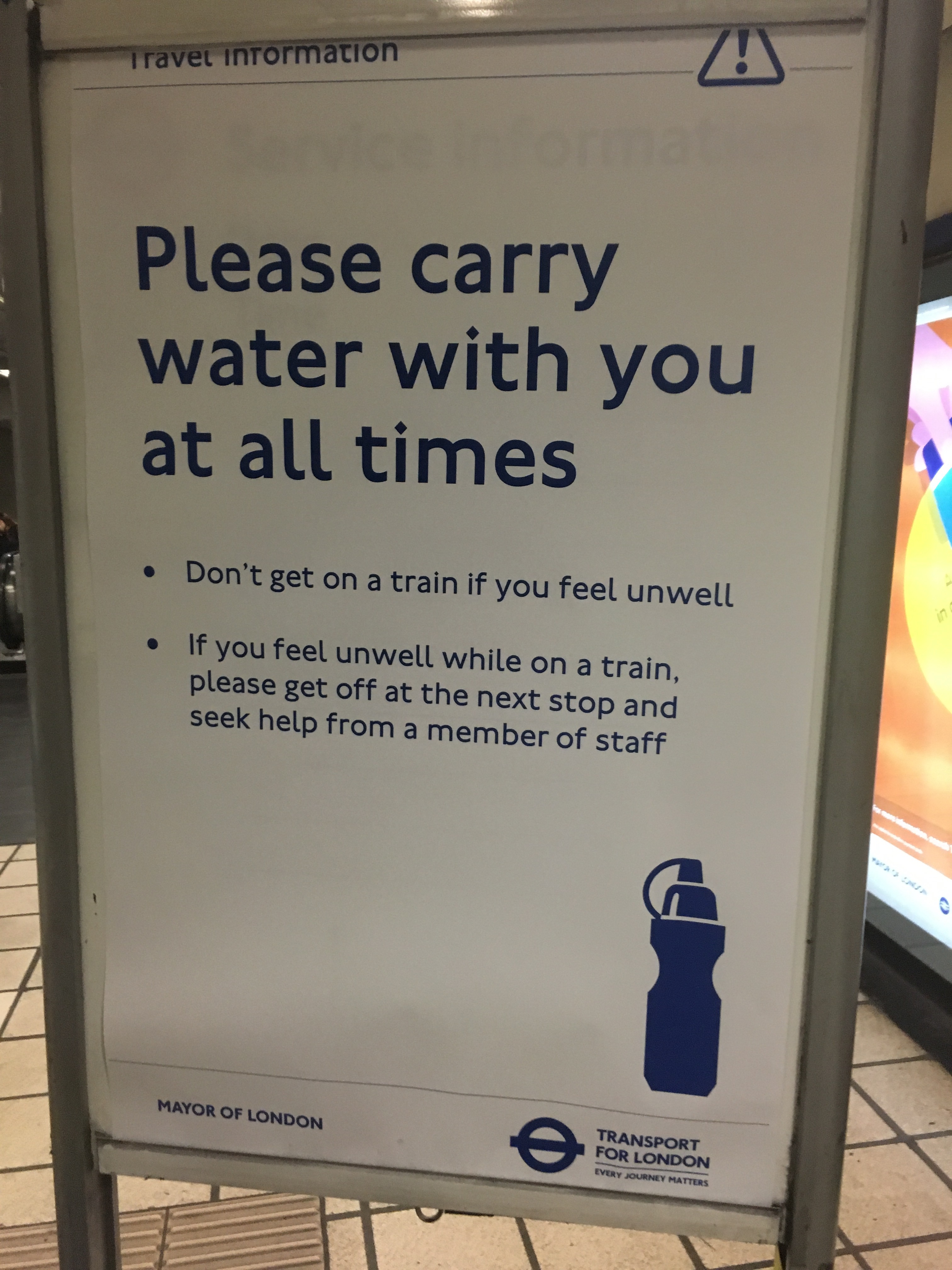 But one of my favourites is the next one which will be displayed during the summer month. As the Tube does not manage to cool down the Tube network, a simple solution is to make customers responsible for a save journey. So please do not forget your water bottle in summer when taking the Tube!