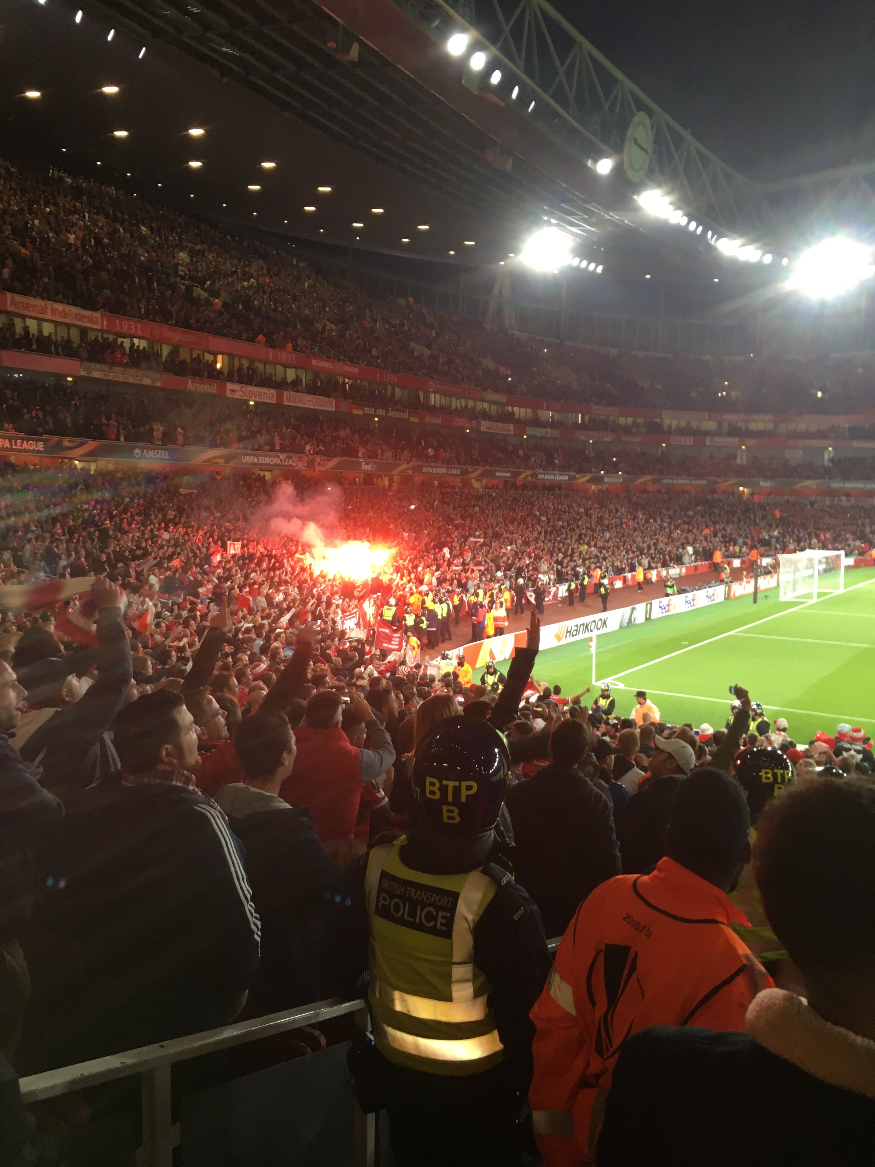 After we got in eventually, we were surrounded by Arsenal supporters, some of them season ticket holders. Although we didn’t dress up with Cologne scarfs, we have been identified as Germans. Luckily, we have been categorised as nice Germans and had a little chat with the lady behind us but no harm whatsoever.