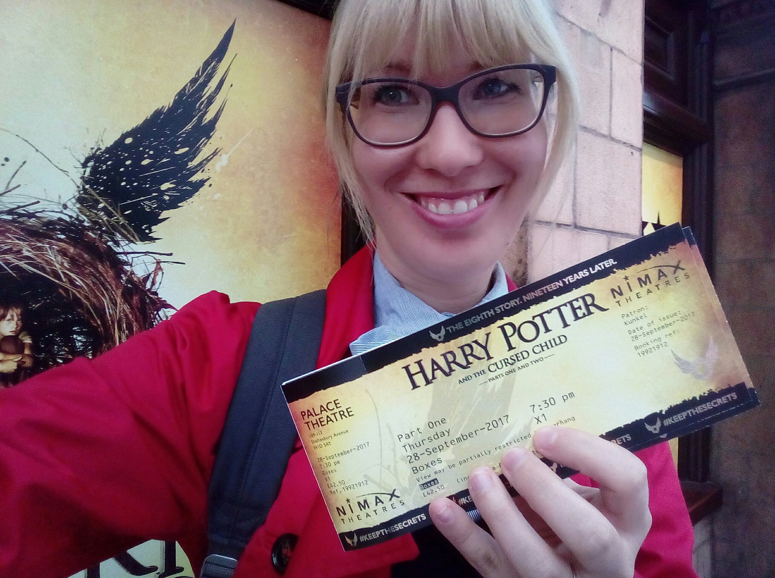 Nearly the same moment we learned that we will move to London I highlighted the date for buying tickets for the Harry Potter play “Harry Potter and the cursed Child“ red in my calender. As this play is so popular it’s nearly impossible to get tickets. Therefore you have to wait for the rare release dates and the be very very quick. So I sat in front of my laptop, my mobile and Alex’ mobile at the end of December (around me no furniture, just boxes) trying to be successful. Well, I wasn’t. Same procedure at the beginning of the year, were I achieved to get a space in the online queue at a number over 30,000. I gave up (since the website told me everybody above 10,000 should better leave the queue). I also thought about going to the ‘real’ queue at the Palace Theatre at Cambridge Circus but then we met a Australian girl (at the play where Daniel Radcliffe acted) who told us that she managed to buy the last ticket – after about EIGHT hours waiting on a Saturday morning (which ment she had to queue before 7am). Oooookaaaay, I thought. I am a Harry Potter addict but somewhere you should stop. And I did. Always being sad when I came along the theatre.