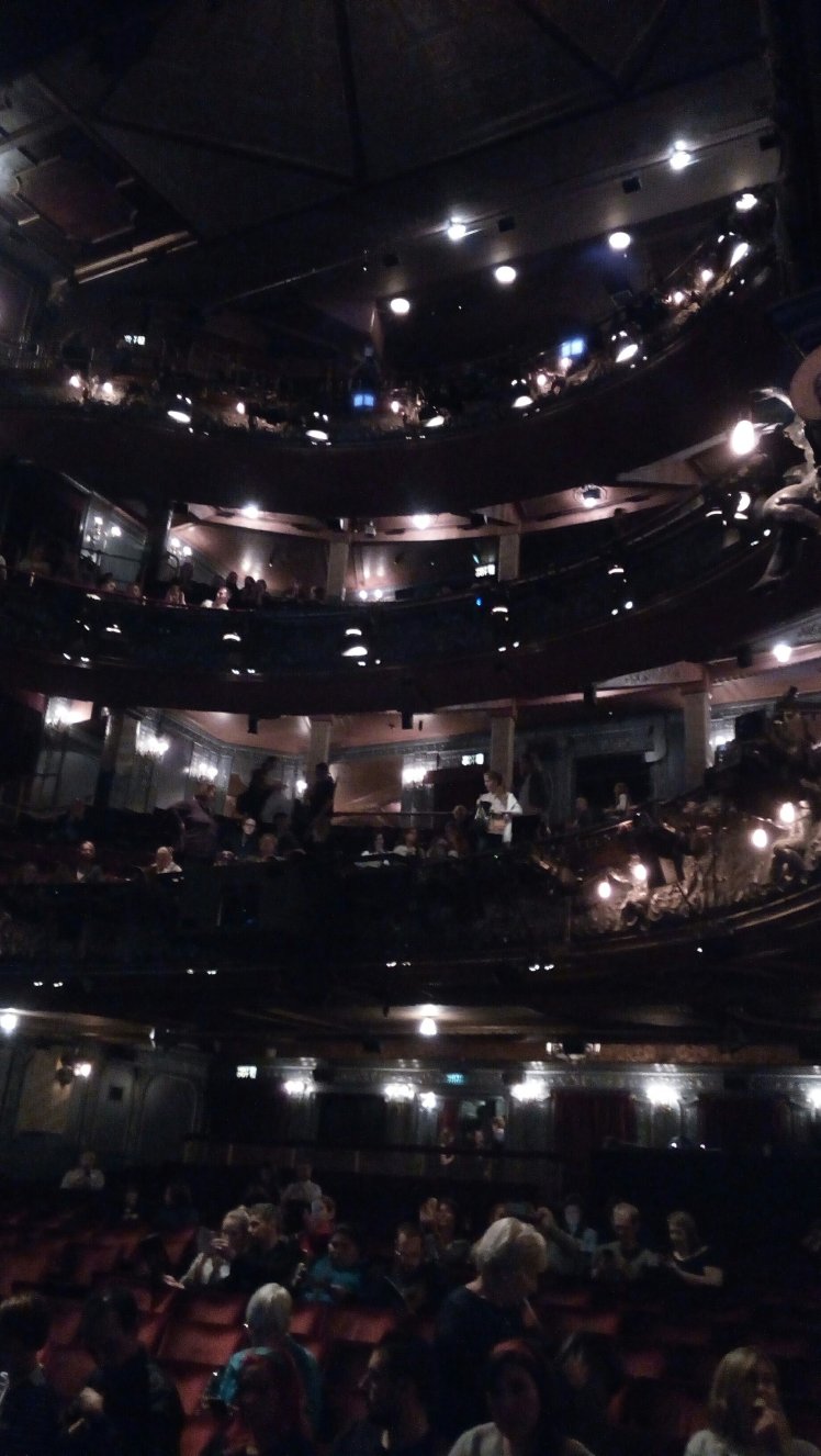 But on Wednesday evening this week – and this is the moment where I praise having a Facebook account – I read a post in a group where people discussed how to buy an affordable ticket for the Harry Potter play. It seemed as if there were now and then releases of some more tickets. So I set a charm on Alexander to reschedule the start of our date night, went online immediately and was shocked: TWOHUNDREDANDFIFTY pounds? That’s not really affordable although the price was for the two parts of the play (lasting together over 5 hours). But then I saw tickets for less and really managed to get the last tickets for about £80 with restricted view (which is still not cheap but compared to £250 seemed to be a bargain). As the play was shown in two consecutive parts on Thursday and Friday evening I had to be spontaneous but to be honest: For this I would have canceled a date with Prince Harry (as I am married and he has a girlfriend now). That I was really lucky to get these ticket within ten minutes I recognized yesterday shortly before the play started when I spoke to two German girls. They had managed it to get into the online queue 1,5 years ago at a quite ‘good’ position (around 10,000). But it took over seven hours until they arrived at the online booking desk. One girl told me she was checking the queue every ten minutes while working. Must have been a very productive day…